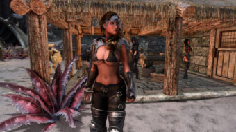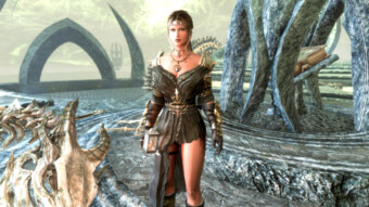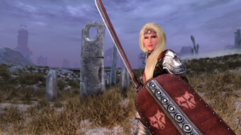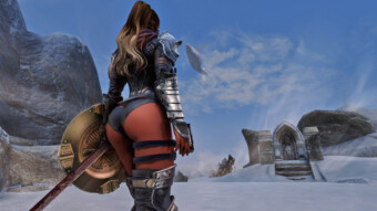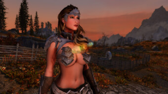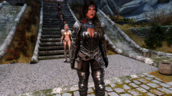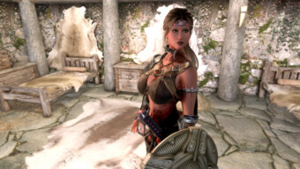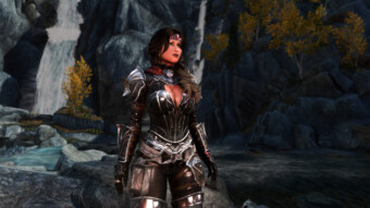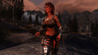 Gwen has been around for over 7 years now. She is my go-to when I want to just play Skyrim. She is a fearless leader, (sometimes too fearless). Tallest woman in Skyrim, biggest woman in Skyrim and one of the most ferocious fighters. Probably, pound for pound she has the biggest boobs in Skyrim along with a over muscular bubble butt, thanks to Dibella and her enhancements; Gwen leads without question and is the tank / barbarian of the group.