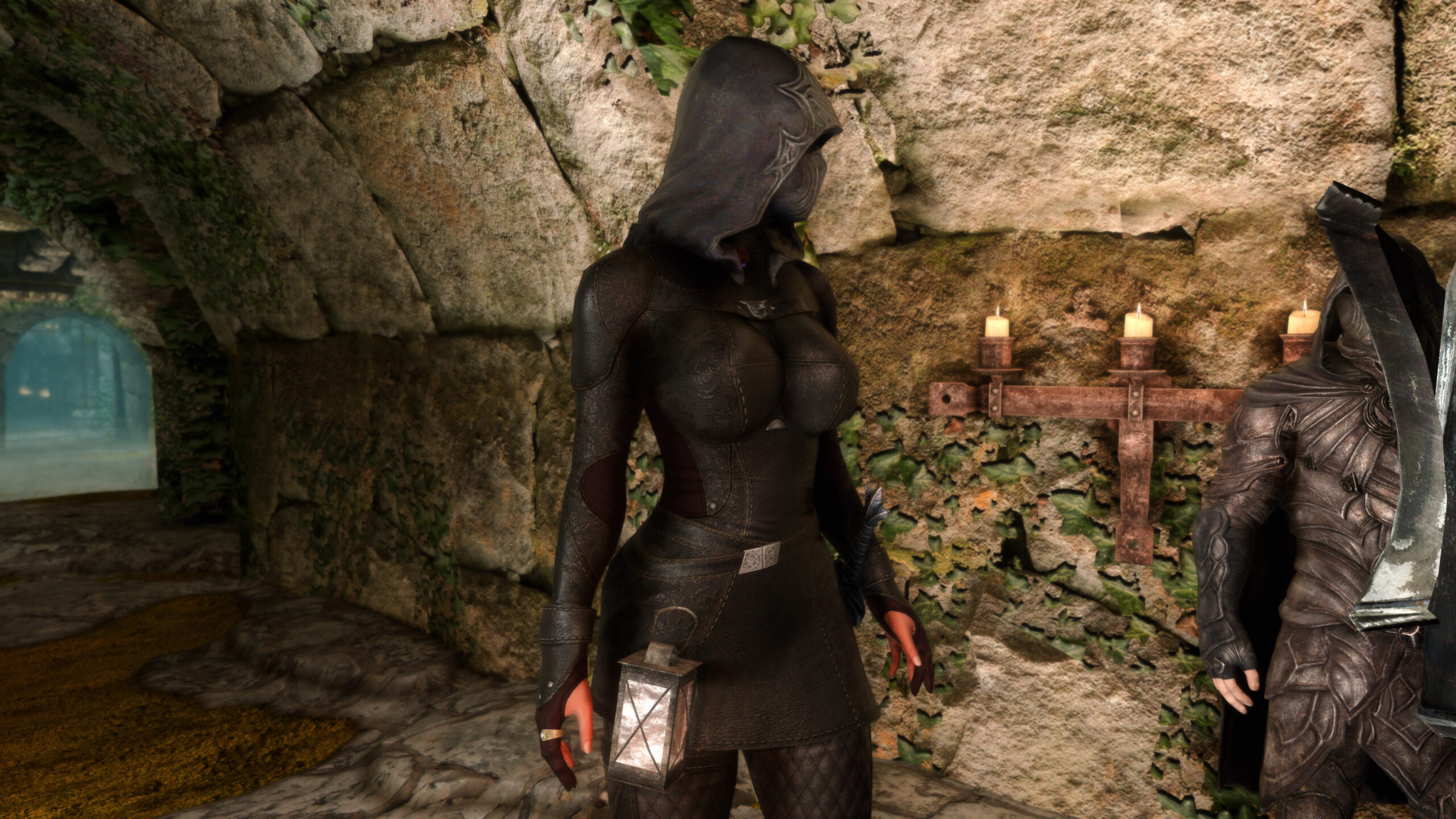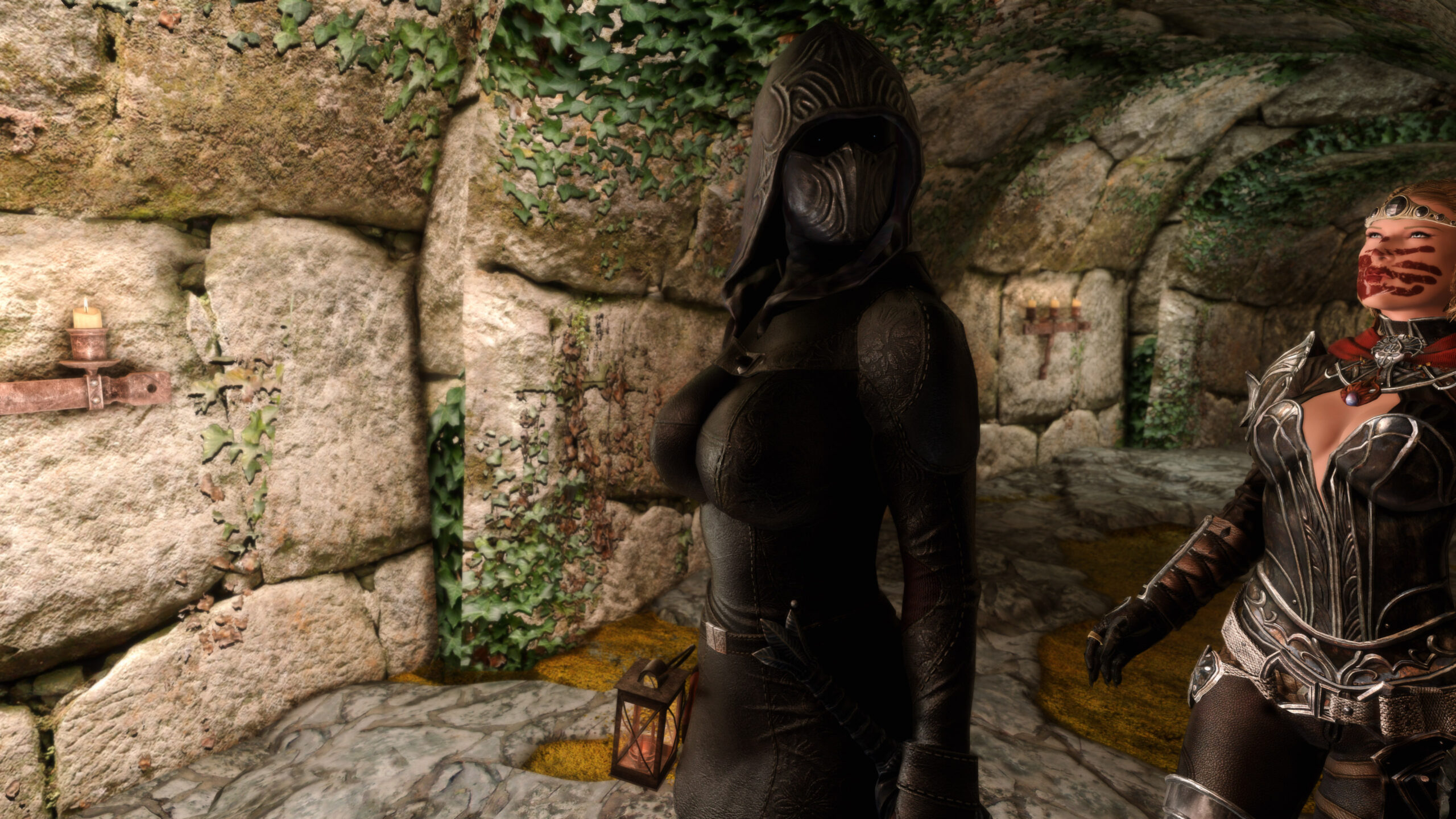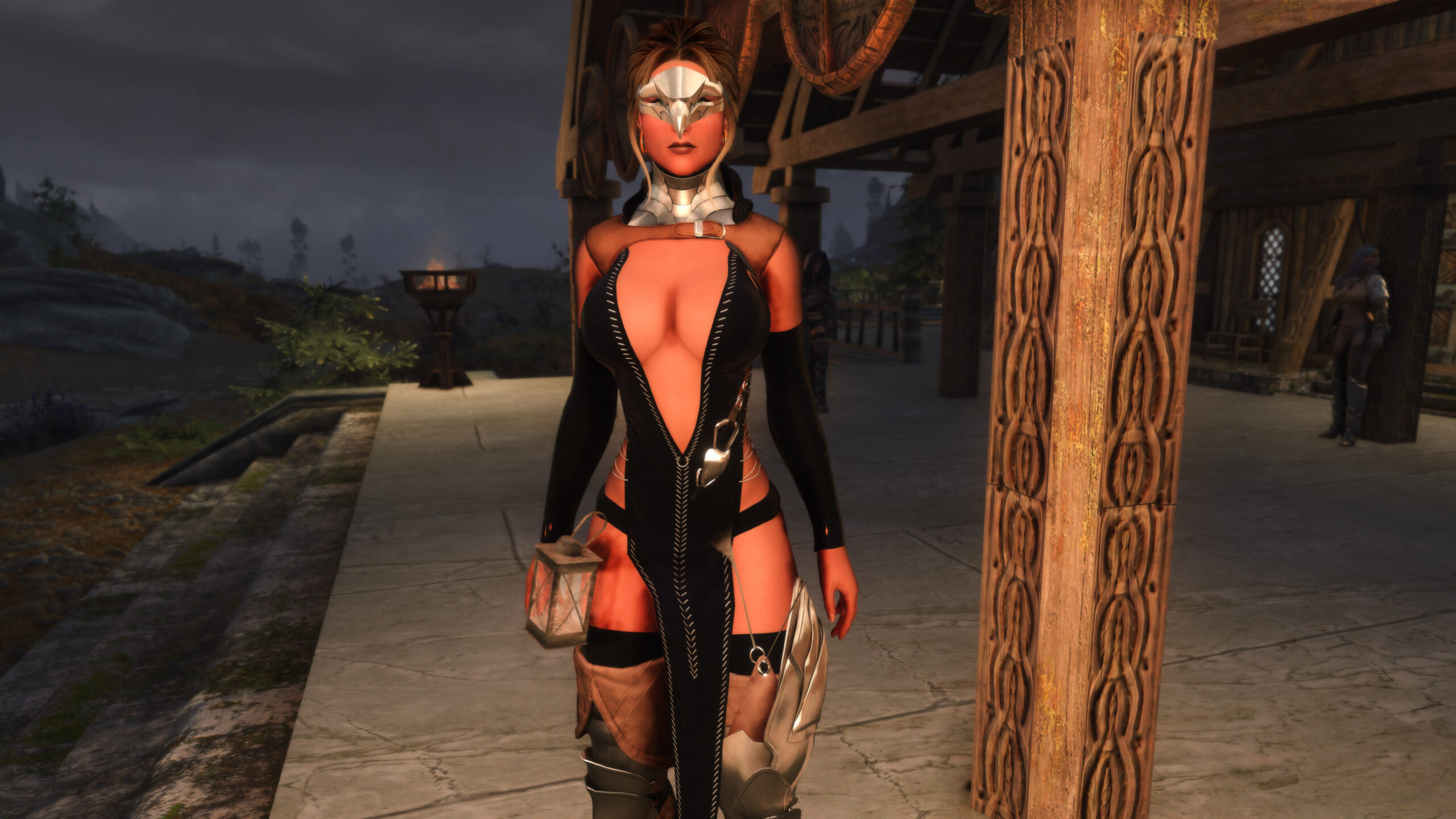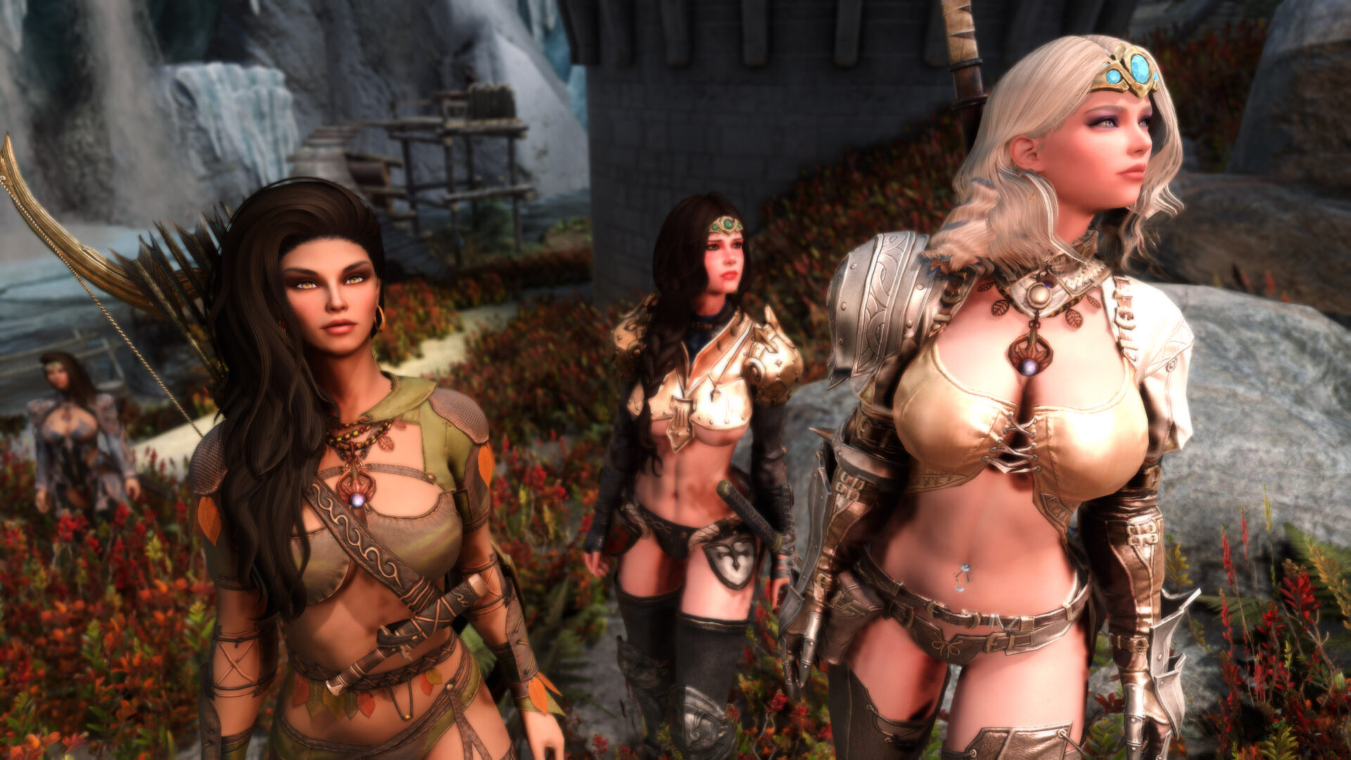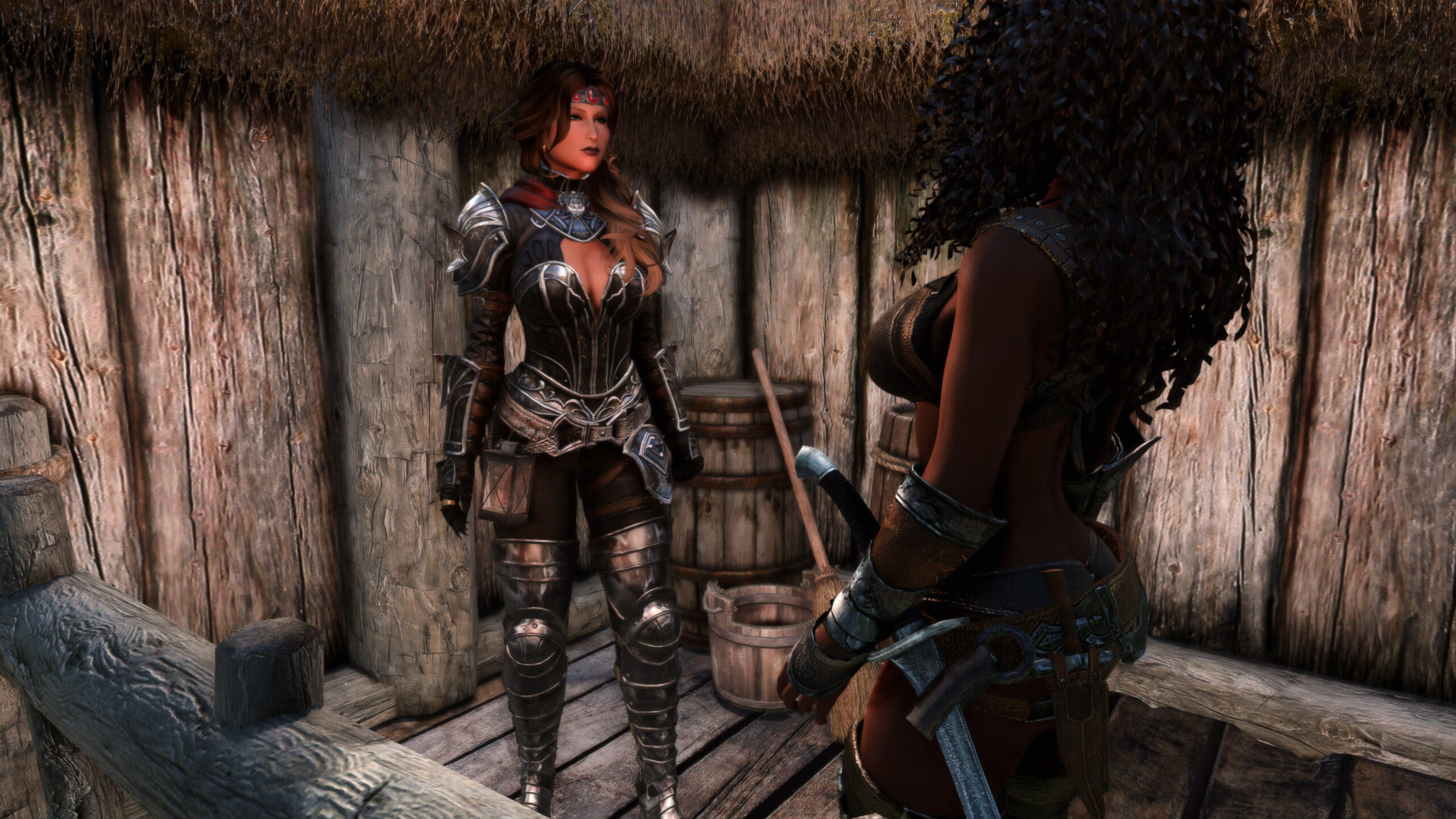 Gwen has been around for over 7 years now. She is my go-to when I want to just play Skyrim. She is a fearless leader, (sometimes too fearless). Tallest woman in Skyrim, biggest woman in Skyrim and one of the most ferocious fighters. Probably, pound for pound she has the biggest boobs in Skyrim along with a over muscular bubble butt, thanks to Dibella and her enhancements; Gwen leads without question and is the tank / barbarian of the group.