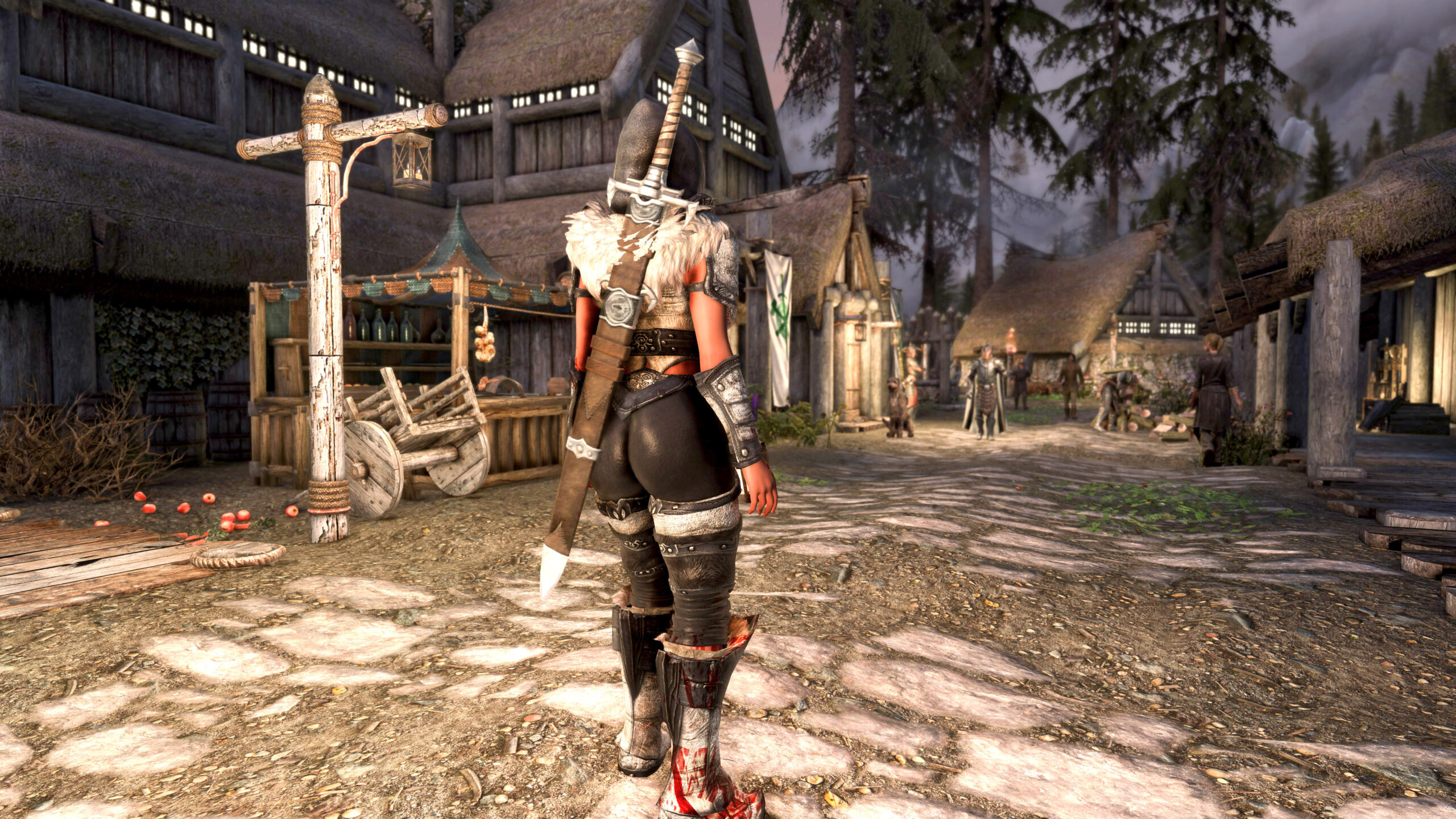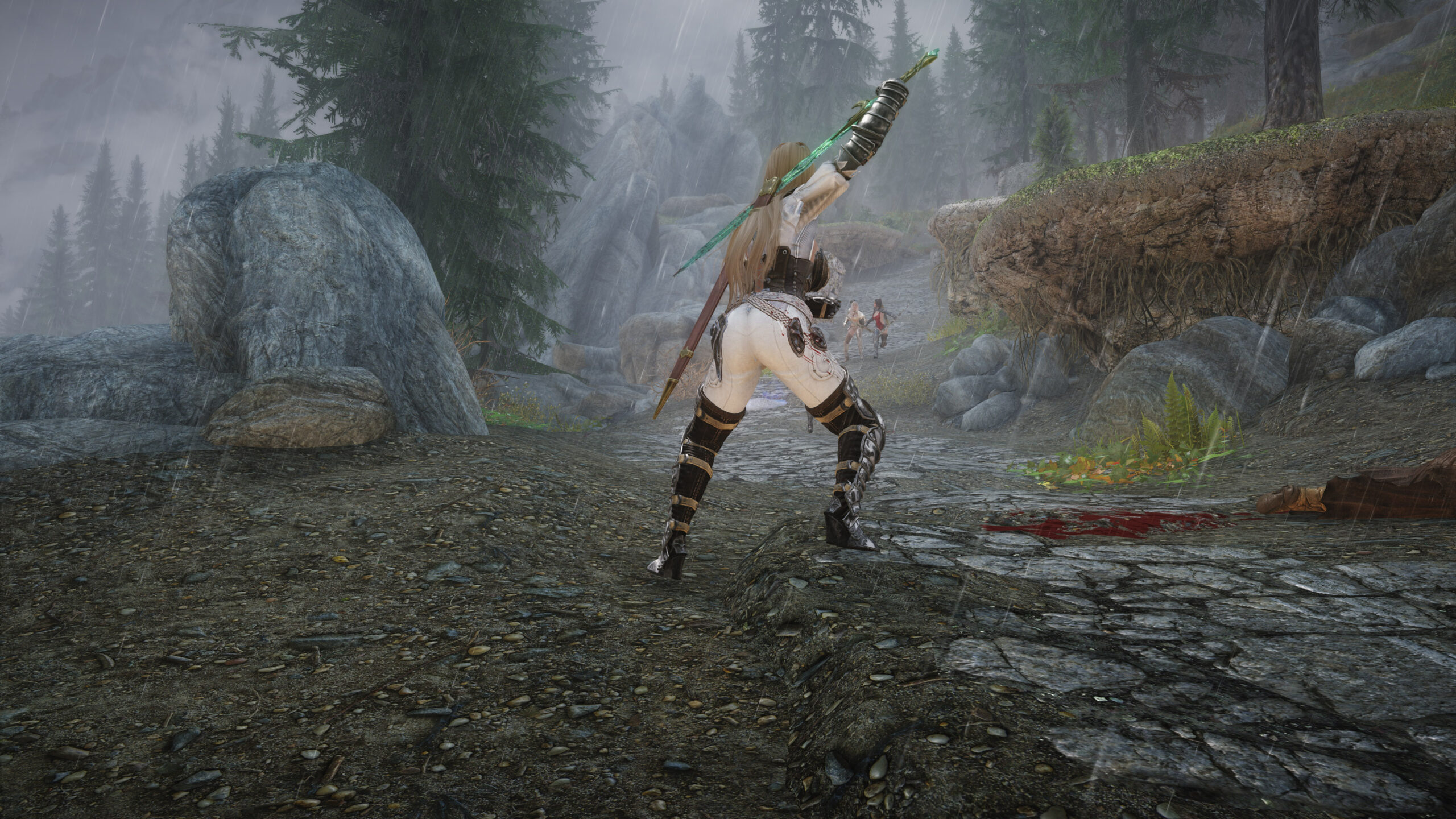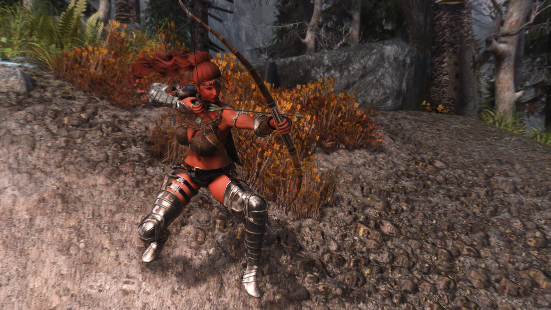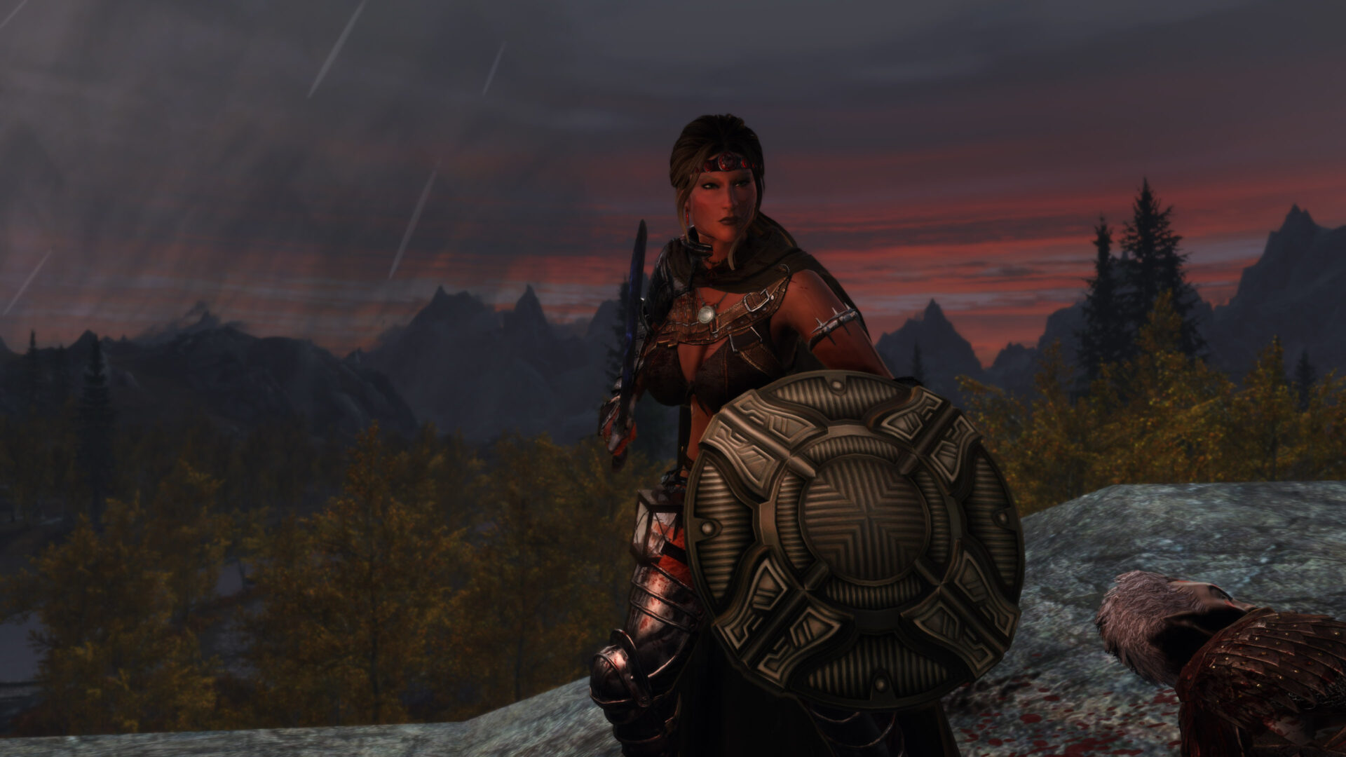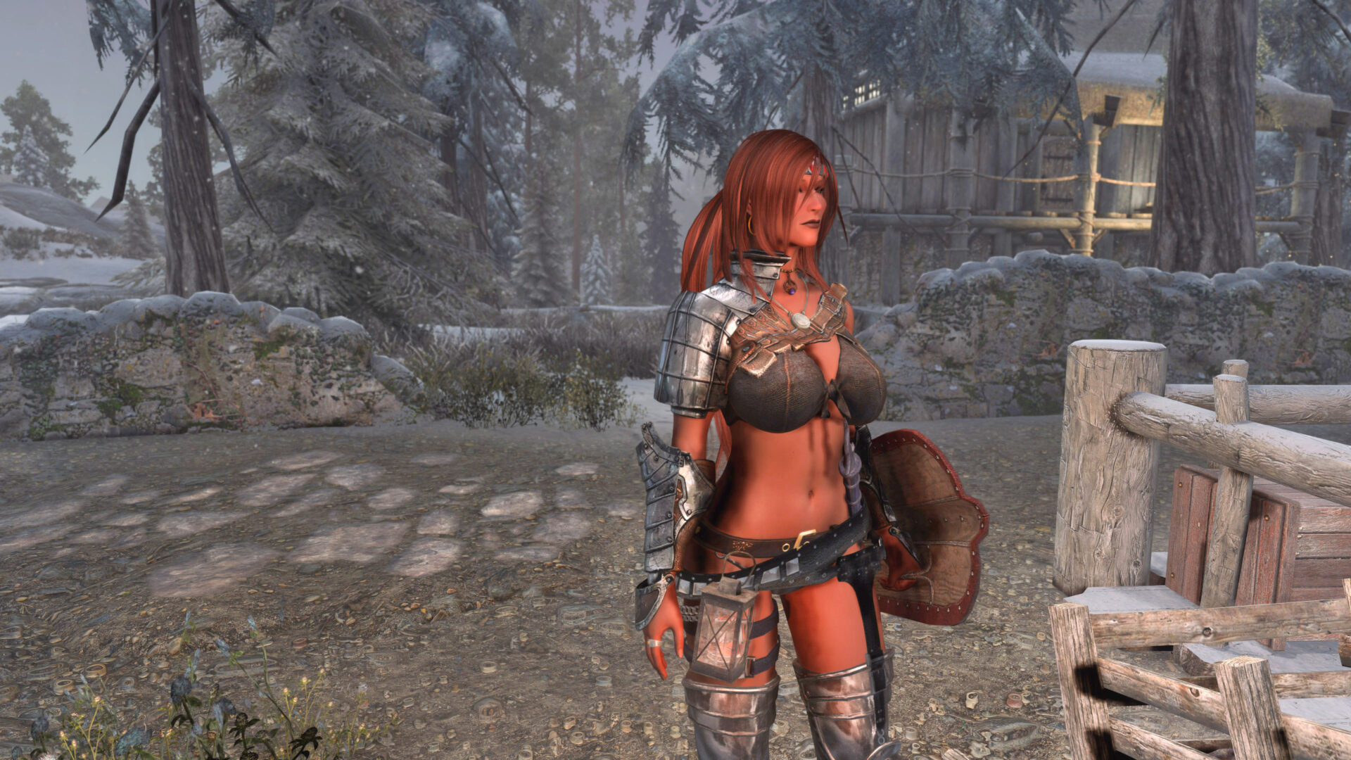 Gwen has been around for over 7 years now. She is my go-to when I want to just play Skyrim. She is a fearless leader, (sometimes too fearless). Tallest woman in Skyrim, biggest woman in Skyrim and one of the most ferocious fighters. Probably, pound for pound she has the biggest boobs in Skyrim along with a over muscular bubble butt, thanks to Dibella and her enhancements; Gwen leads without question and is the tank / barbarian of the group.