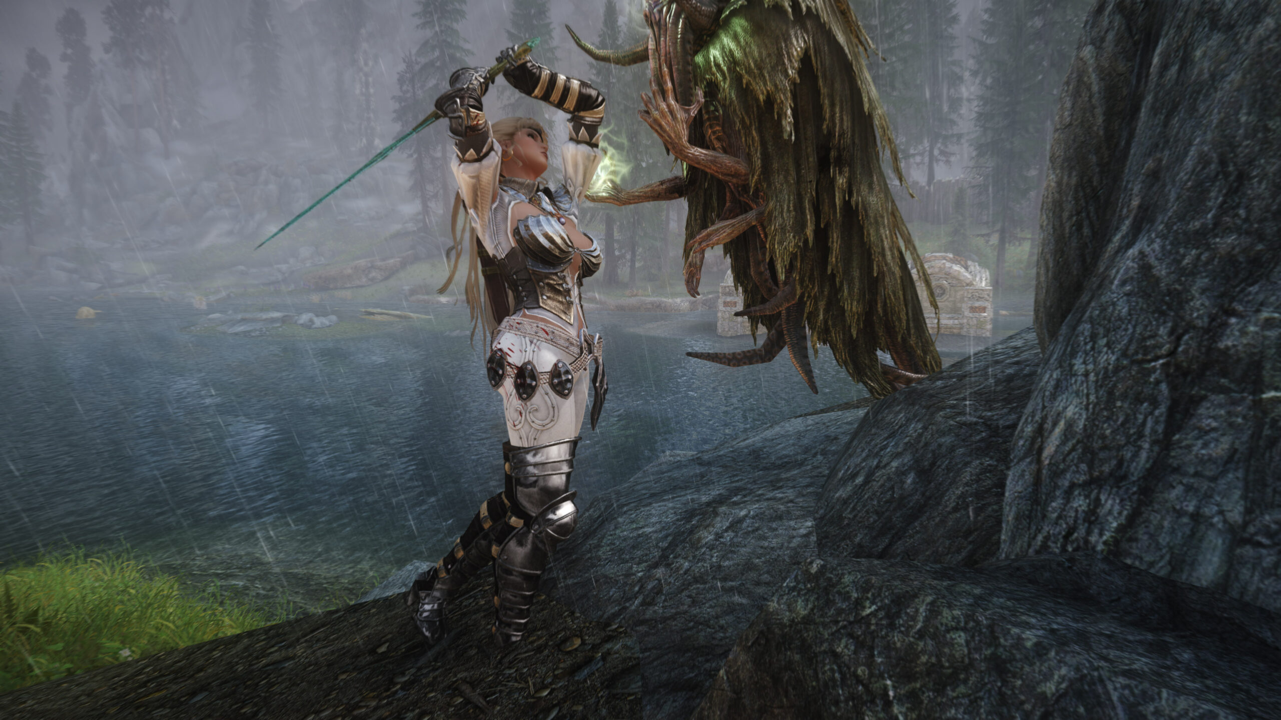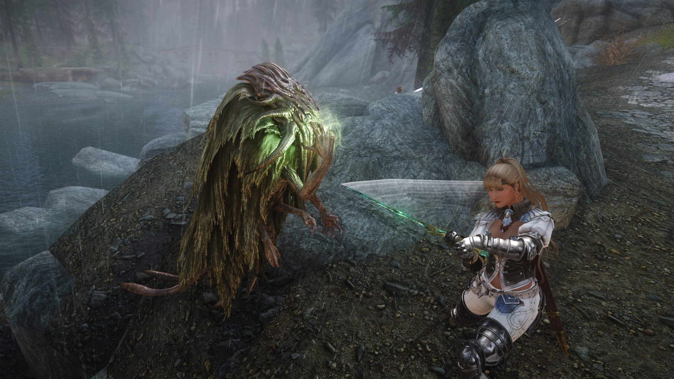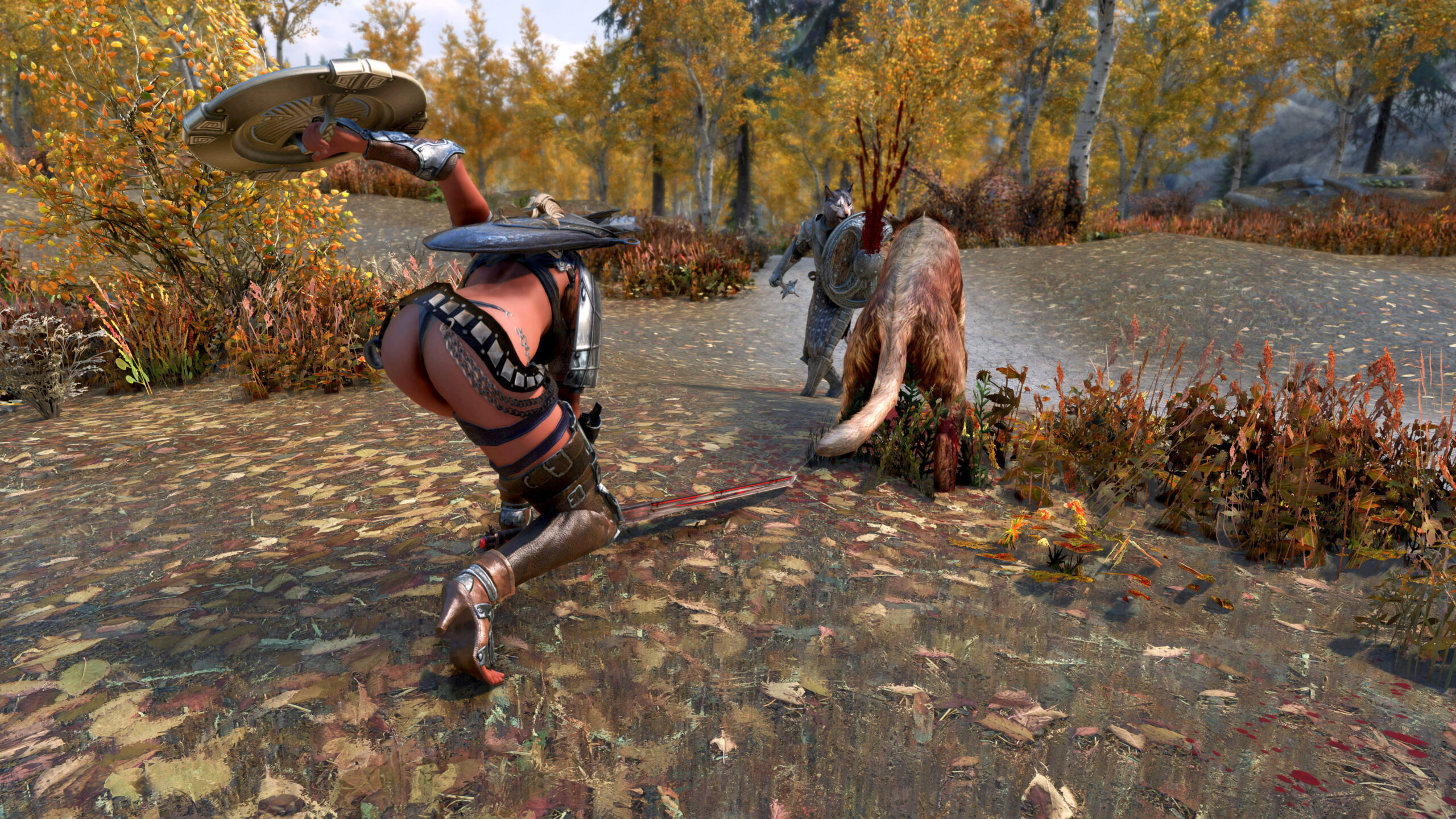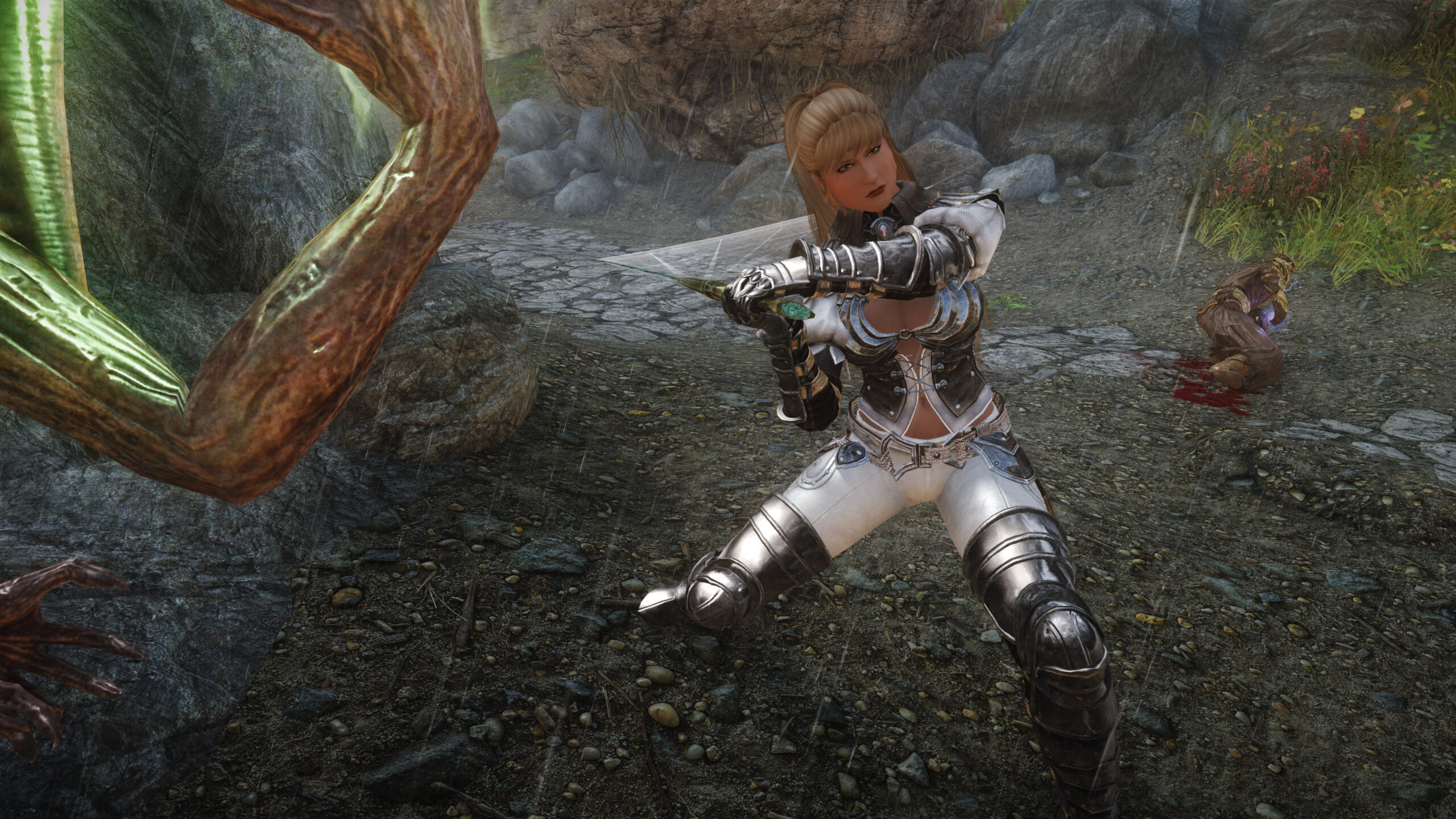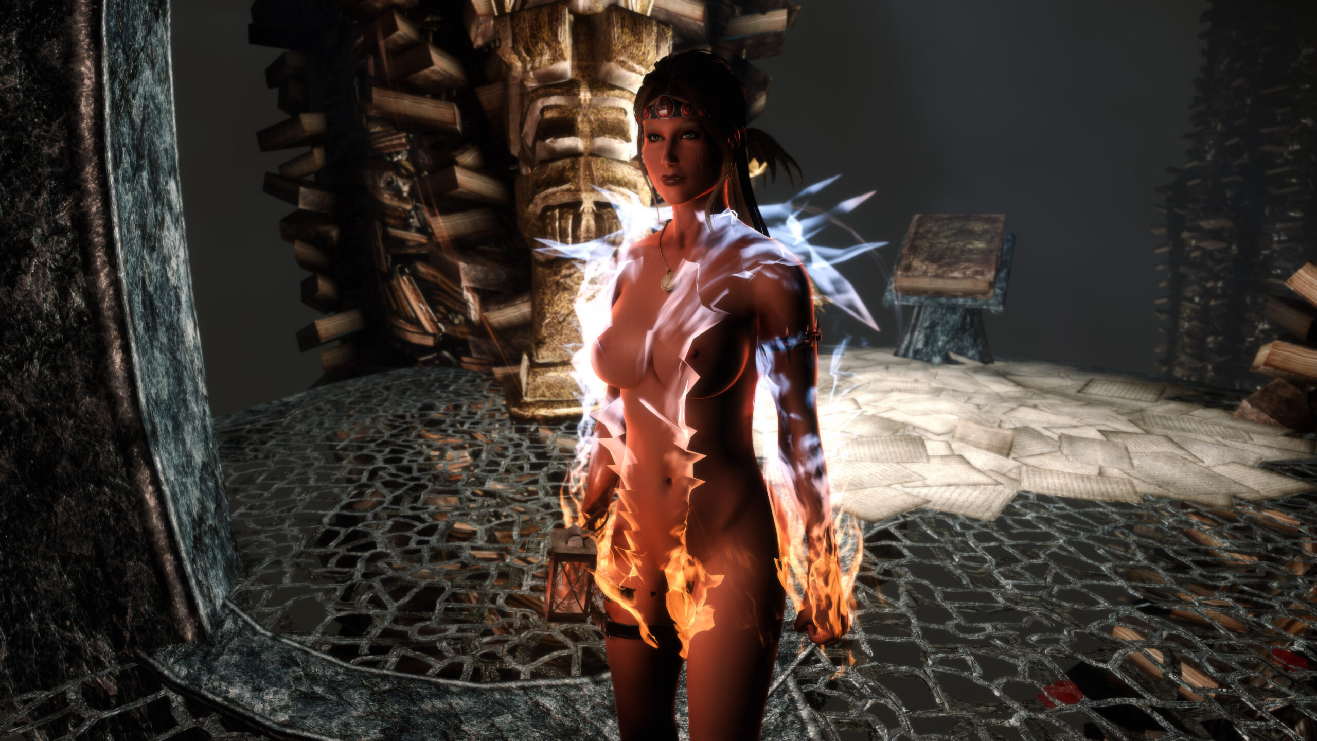 Gwen has been around for over 7 years now. She is my go-to when I want to just play Skyrim. She is a fearless leader, (sometimes too fearless). Tallest woman in Skyrim, biggest woman in Skyrim and one of the most ferocious fighters. Probably, pound for pound she has the biggest boobs in Skyrim along with a over muscular bubble butt, thanks to Dibella and her enhancements; Gwen leads without question and is the tank / barbarian of the group.