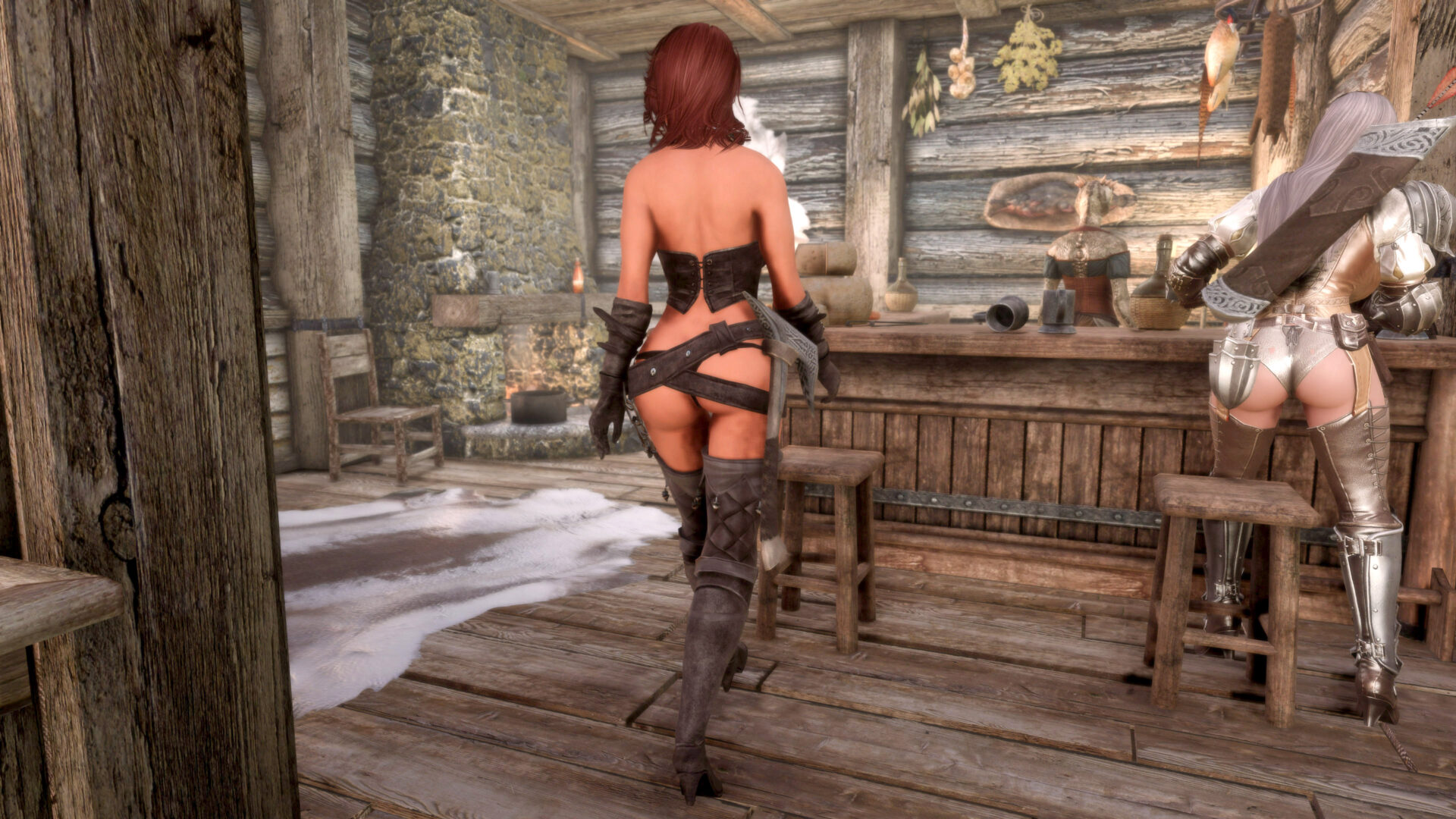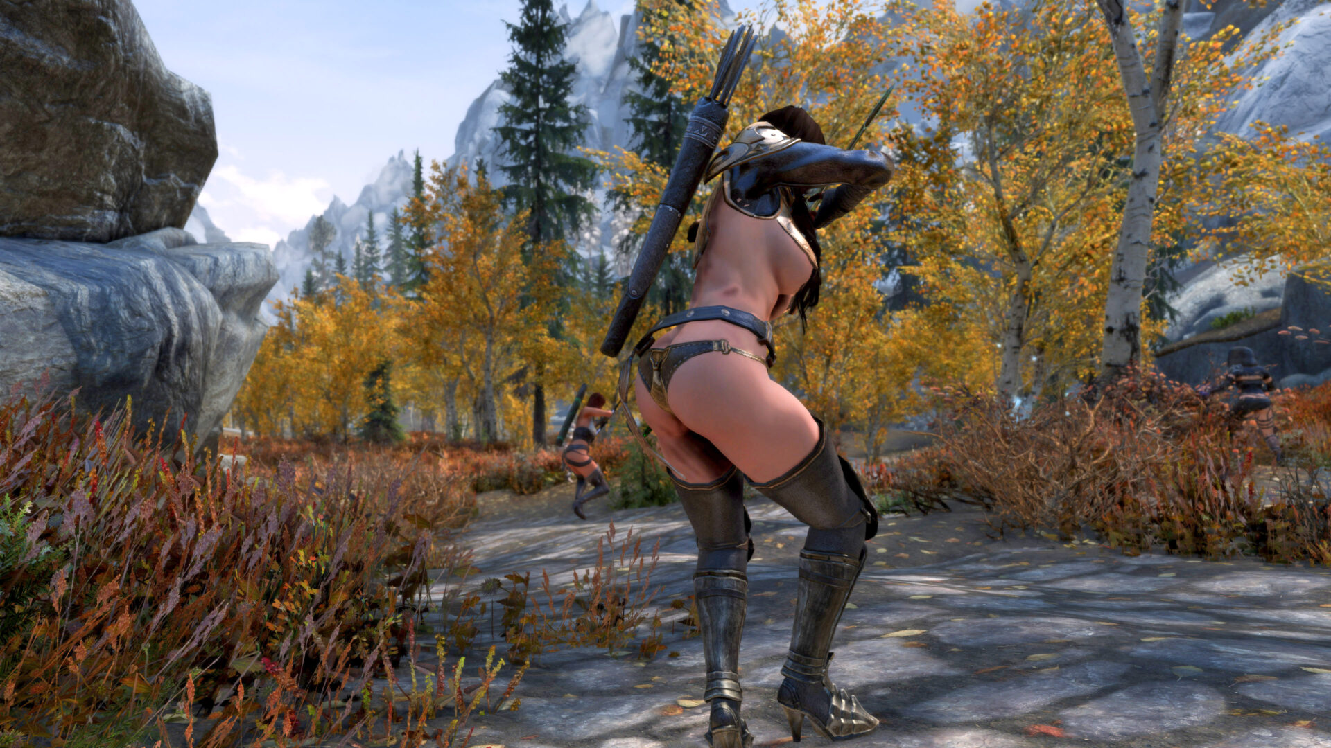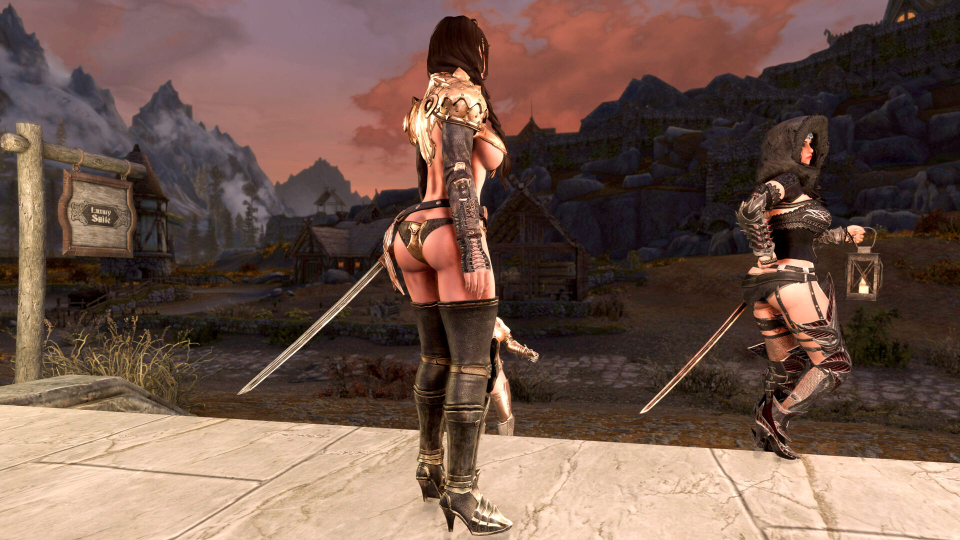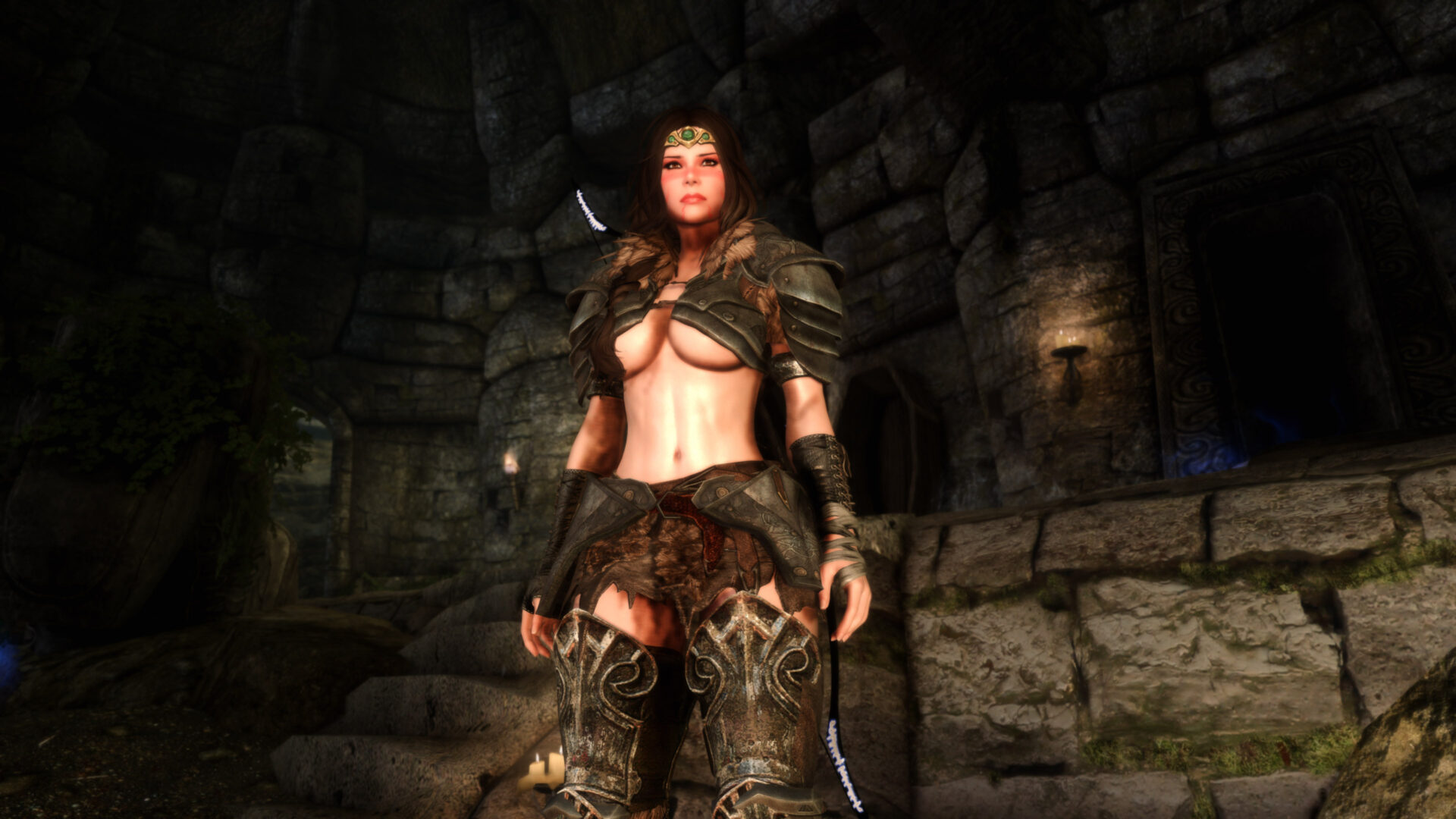Why can’t I stream this character anymore. Well I probably could but I would have switch out some of the outfits. Gwens is flat out a thong and her entire ass is hanging out. Bella also is in a thong with only a belt or two covering it. Anaka would be the only “ok” one because Eerika has the most blatant underboob in the history of Skyrim and has a cute little plumbers crack to boot. So Raevyn it is.