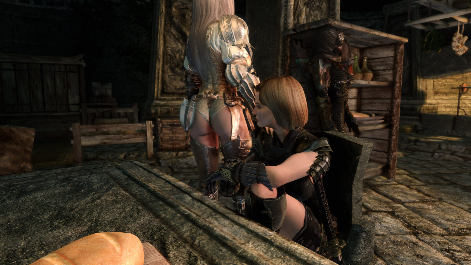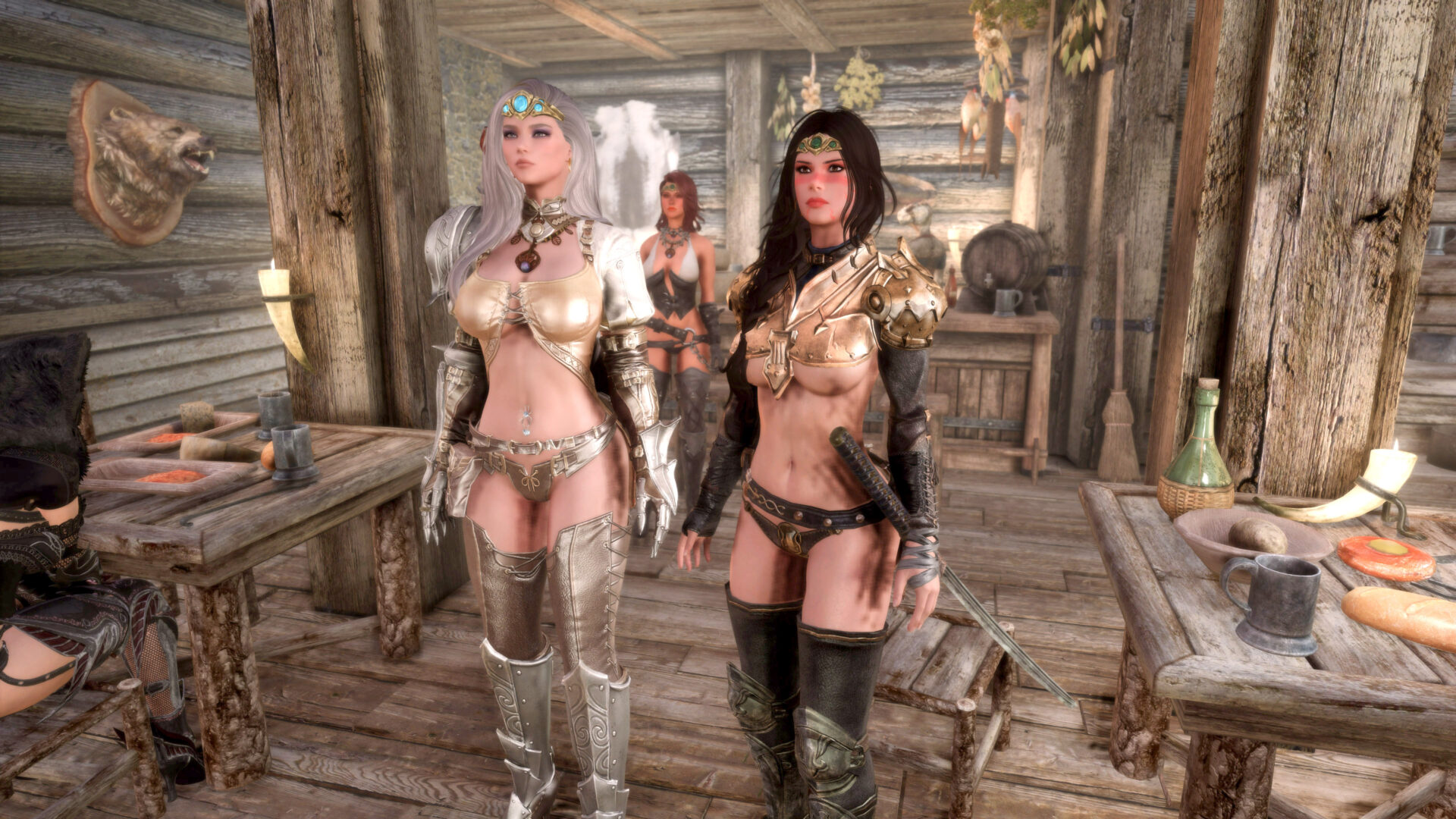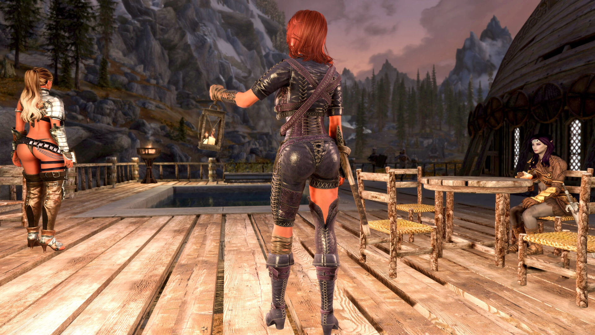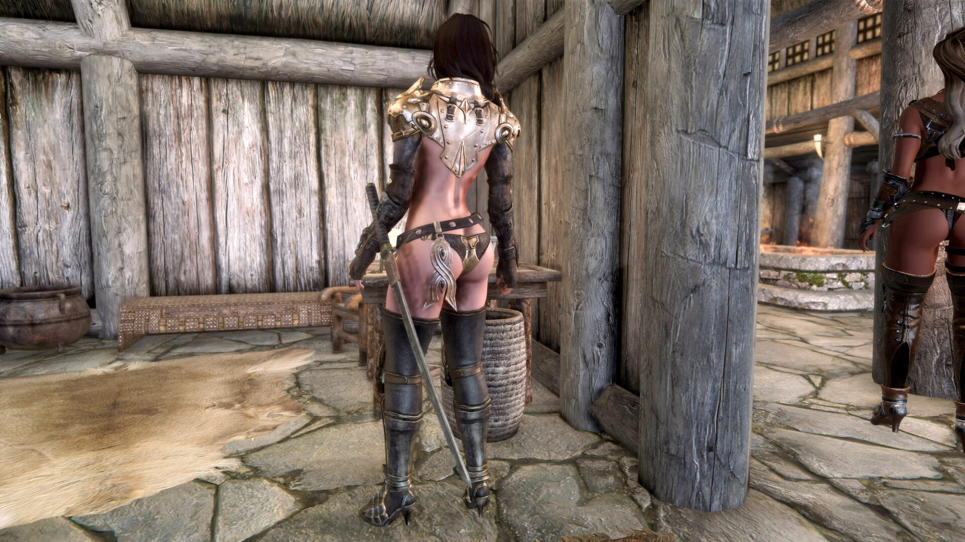 Why can’t I stream this character anymore. Well I probably could but I would have switch out some of the outfits. Gwens is flat out a thong and her entire ass is hanging out. Bella also is in a thong with only a belt or two covering it. Anaka would be the only “ok” one because Eerika has the most blatant underboob in the history of Skyrim and has a cute little plumbers crack to boot. So Raevyn it is.