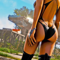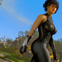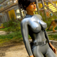 Tara Dikoff, Piper and Dogmeat head over to the land of fizzy pop and long winded belches. With new outfits, new weapons and a new area to explore, this can only end up in a whole lot of trouble. They explore the island and find some crazy cults, a haunted mansion and Pipers perfect boobs. Tara plays along with the Raiders for a while then she turns coat and strikes them down. All while wearing a skin tight suit that gives her camel toe.